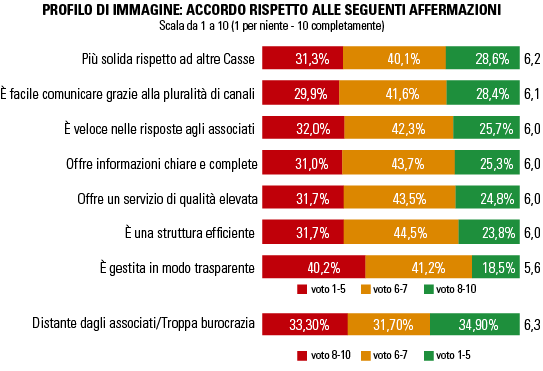 Nel complesso circa il 70% degli associati intervistati ha un’immagine di Inarcassa positiva e solo la trasparenza della gestione costituisce un aspetto critico.