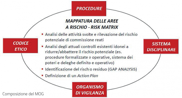 Nell’ottica integrata della governance aziendale si evidenzia che i punti cardine del MOG 231 anche se mirati ad aree definite come reati dalla legislazione vigente, costituiscono un vero e proprio sistema di controllo interno e di gestione dei rischi.