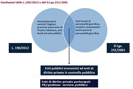 L’ambito soggettivo di applicazione delle due discipline è sicuramente un elemento di congiunzione. Gli enti pubblici economici e gli enti privati/società in controllo pubblico hanno l’obbligo di integrare, qualora sia stato adottato, il Modello di Organizzazione, Gestione e Controllo D.Lgs. 231/2001 (di seguito MOG 231) con misure idonee a prevenire anche i fenomeni di corruzione e illegalità in coerenza con le finalità della legge 190/2012 inserendole in una apposita sezione del documento del MOG 231 o allegando a questo un piano anti-corruzione ad hoc. Nel caso in cui non sia stato implementato il MOG 231, oltre all’obbligo di darne motivazione, è previsto comunque l’obbligo di adottare un Piano di Prevenzione della Corruzione e della Trasparenza (PPCT).