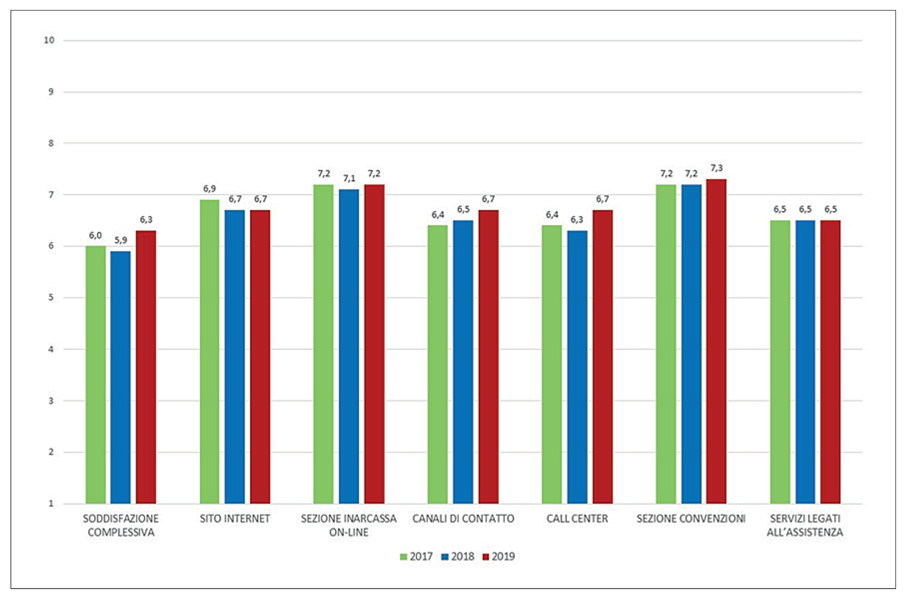 Se i servizi legati all’assistenza ricevono un giudizio pressoché stabile negli ultimi tre anni (voto medio 6,5), cresce la valutazione complessiva dei servizi di comunicazione, a prescindere dalla frequenza di utilizzo.