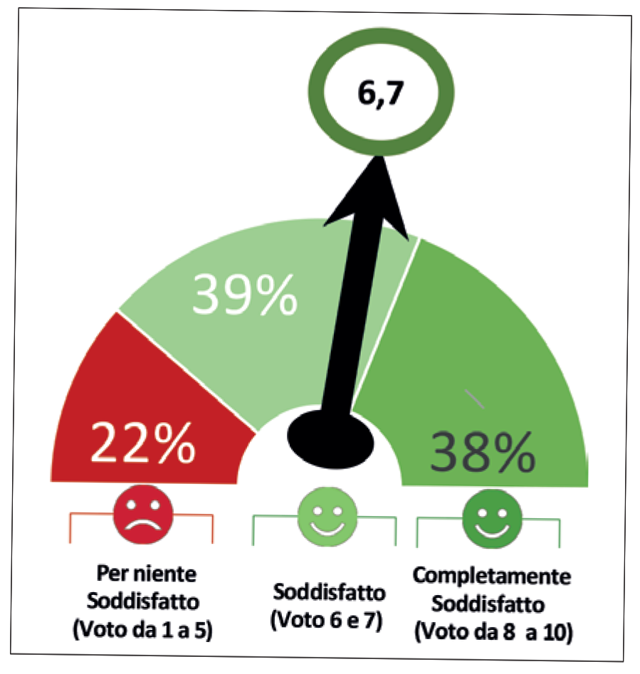 La soddisfazione globale degli associati rispetto ai servizi offerti da Inarcassa è mediamente più che sufficiente ( voto medio 6,3), in crescita rispetto agli anni scorsi (nel 2018 era pari a 5,9). Il 33% degli iscritti ha espresso un giudizio eccellente (voto 8-10) contro il 28% del 2018.
