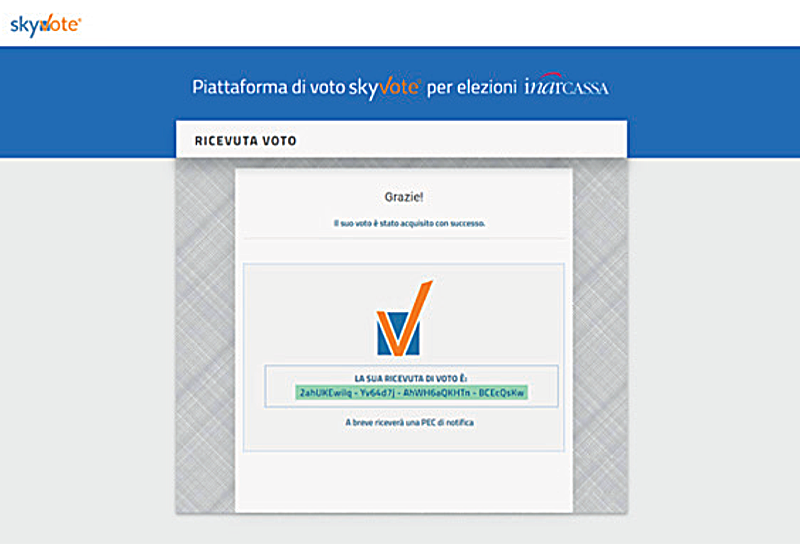 Finita la fase di voto, il sistema impiegherà qualche secondo per acquisire e rendere sicuro il voto espresso. Al termine dell’elaborazione, comparirà sullo schermo la ricevuta di voto con un codice. Questo serve a dimostrare che il voto è stato acquisito correttamente.