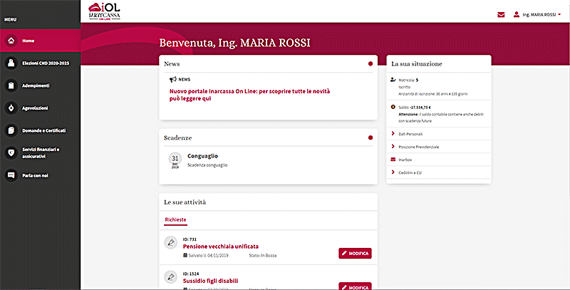 6 Accertarsi che i dati personali in possesso di Inarcassa siano corretti cliccando sui singoli riquadri per abilitare il pulsante “Conferma i dati personali”. Nel caso in cui i dati non siano corretti, è necessario cliccare sul tasto rosso “Modifica” che rimanda sul portale iOL per aggiornare i dati personali.