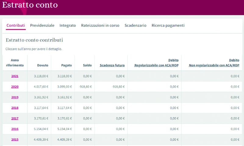 L’ estratto conto contributi, che può essere salvato o stampato, permette di avere il dettaglio dei contributi dovuti e versati per ogni anno di iscrizione alla Cassa nonché un eventuale saldo ancora dovuto.