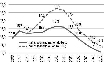 2. scenario europeo EPC-WGA, che recepisce lo scenario demografico e macroeconomico elaborato in sede europea descritto in precedenza.