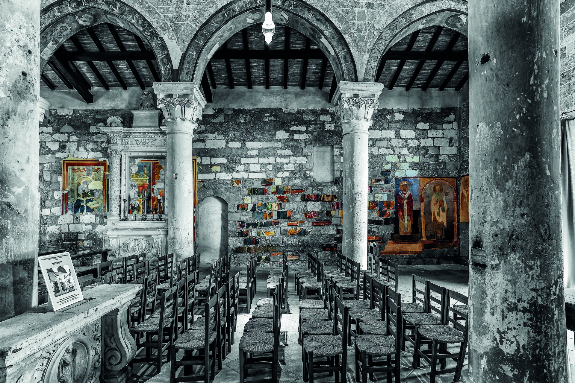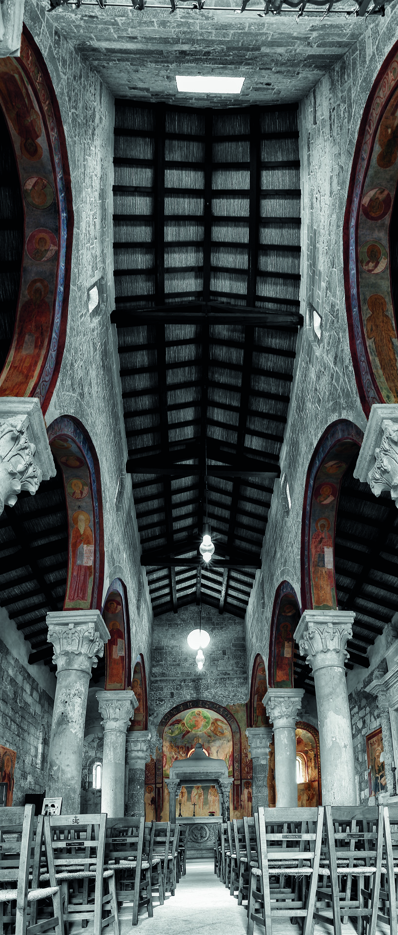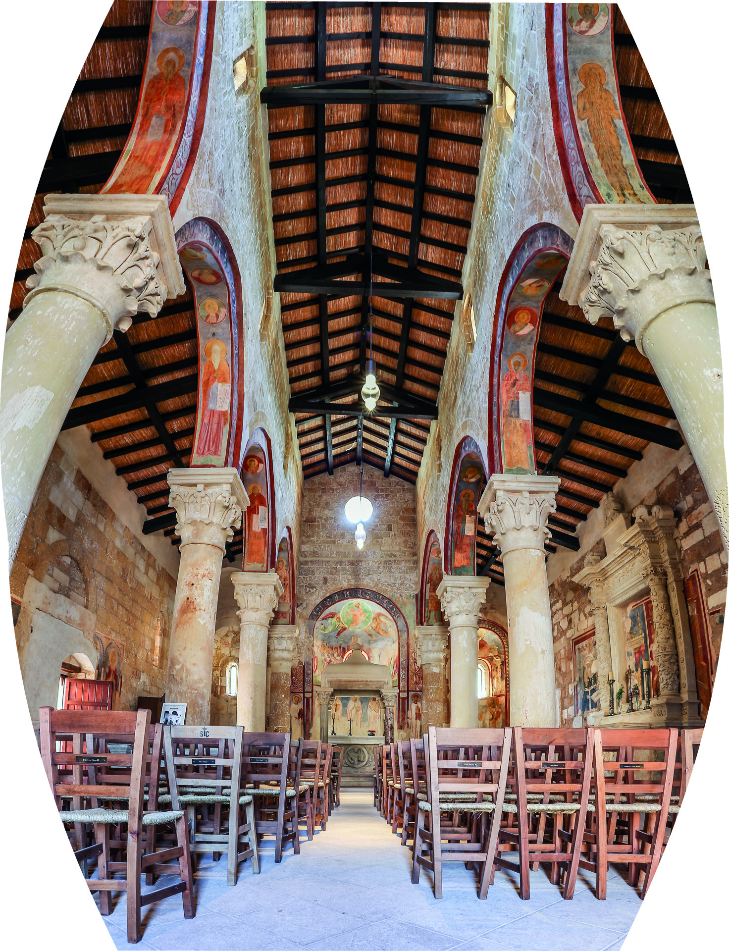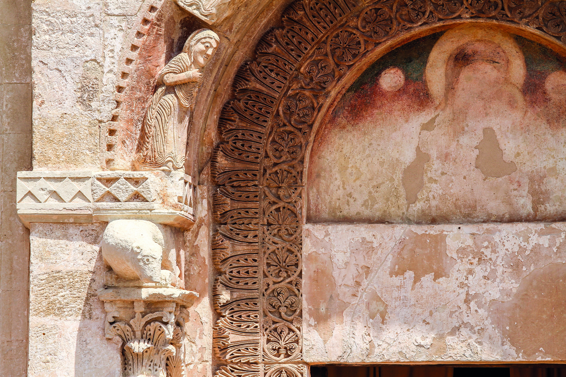 Dettaglio dell’abside centrale dell’Abbazia di Cerrate, Lecce – vista dal basso