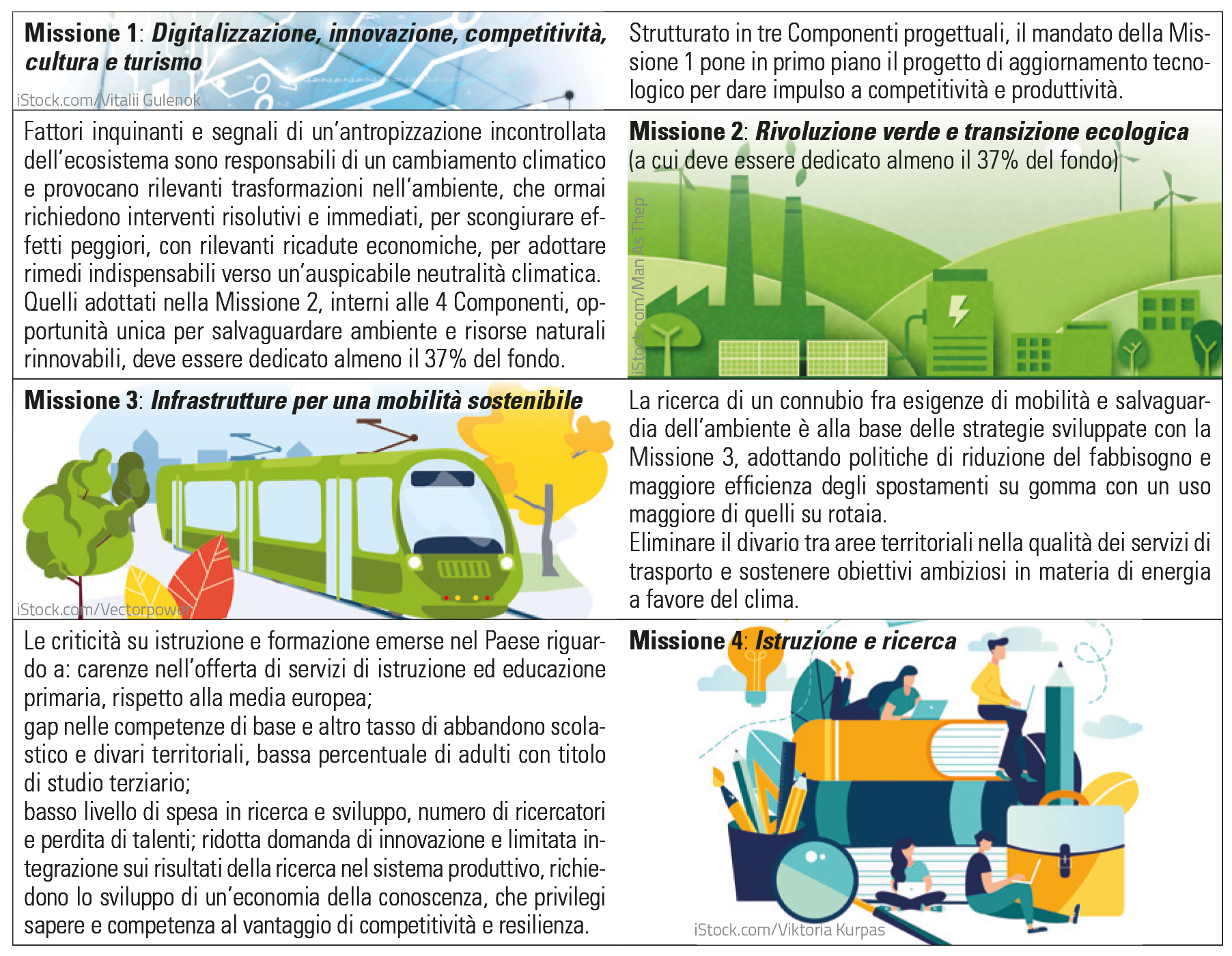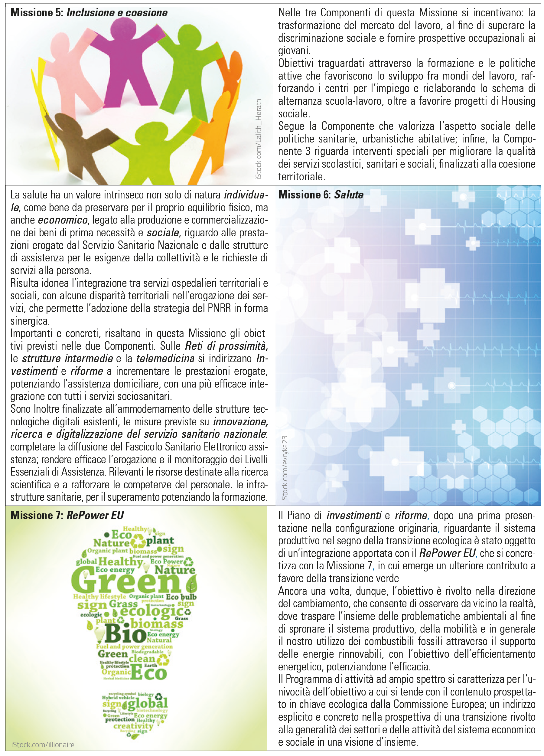 Le Missioni sottese agli obiettivi del PNRR