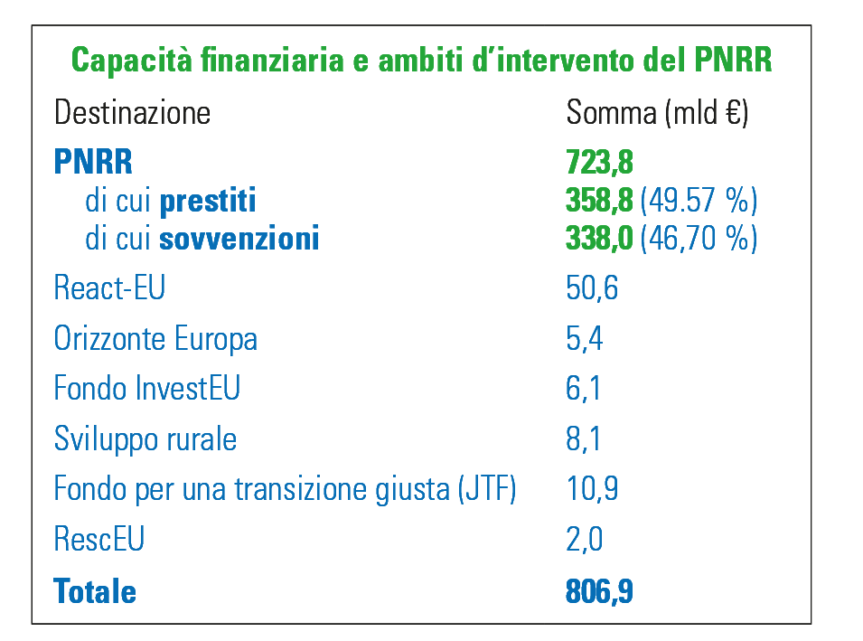 1 Articoli sul tema PNRR pubblicati in precedenza: n. 4/2020, Covid 19, crollo dell’economia e Piano di rilancio europeo; n. 4/2022, PNRR, la premessa per un cambiamento epocale dell’UNIONE EUROPEA; n. 1/2023, PNRR, programma di portata e ambizioni inedite; n. 3/2024, PNRR Prospetto nuovi risultati raggiunti.