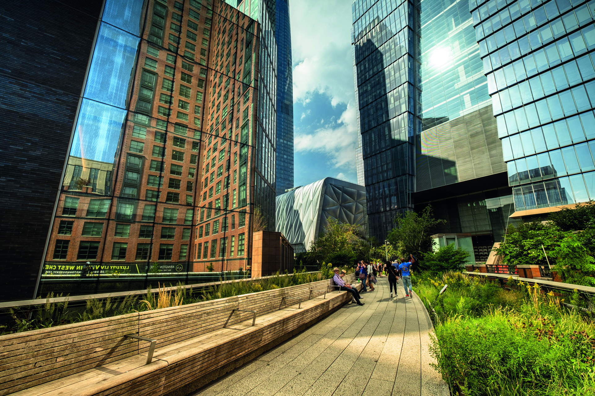 High Line Park è un parco con tracciato di 2,33 km nella parte occidentale di Manhattan. La riqualificazione della West Side Line, risalente agli anni Trenta e abbandonata dal 1980, prese forma nel 1999, dall’idea di un’associazione di residenti che si opponeva al suo abbattimento. Il progetto, approvato nel 2002, si concretizzò con l’inizio dei lavori nel 2006 e fra il 2009 e il 2015 con l’apertura al pubblico, in fasi successive.