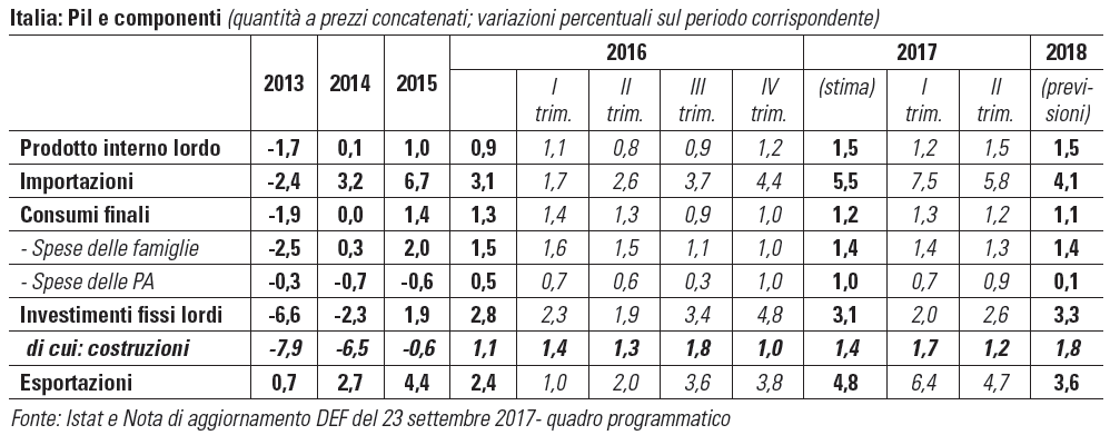 Nel 2017 e anche nel 2018 il Pil crescerà dell’1,5%, mezzo punto in più rispetto al biennio precedente.