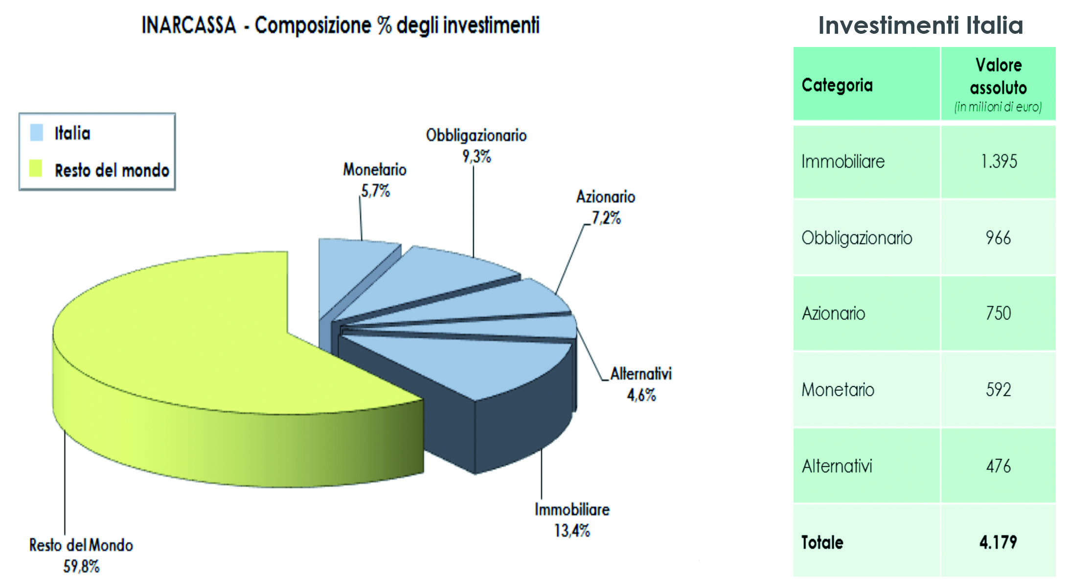Anche in questo caso, nel portafoglio di Inarcassa sono stati individuati investimenti che rientrano nel perimetro indicato dalla normativa. Inoltre, il Consiglio di amministrazione dell’Ente ha deliberato lo scorso dicembre di richiedere il beneficio dell’agevolazione fiscale sui redditi futuri che si otterranno su una porzione di portafoglio (per il momento esclusivamente concentrata nell’ambito dei titoli azionari quotati sul mercato domestico) pari a circa 186 milioni di euro (circa l’1,8% del patrimonio). Nel recente passato si è ritenuto opportuno che la quota destinata agli asset reali italiani fosse piuttosto significativa all’interno del patrimonio della Cassa ma la sua composizione è stata comunque concepita in modo da non stravolgere il profilo di rischio/rendimento del portafoglio. In ogni caso, seppur cercando di ottimizzarne gli effetti dal punto di vista reddituale, il tema delle agevolazioni fiscali non può costituire l’unico presupposto per destinare ulteriori risorse verso gli asset reali italiani. ■