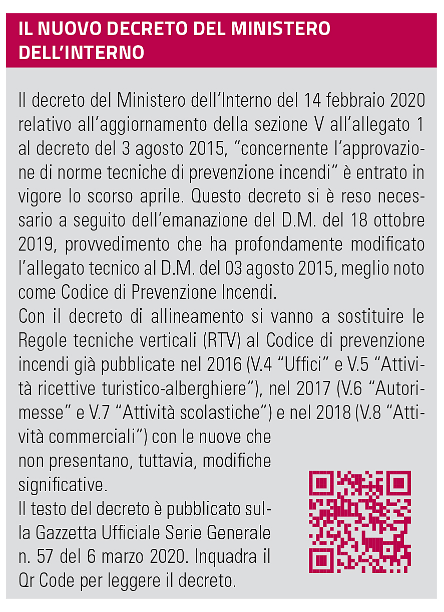Dal 2007 a oggi il mondo normativo è cambiato, recependo le numerosissime evoluzioni scientifiche che si sono affermate nel tempo in Europa e nel mondo: partendo dai decreti del Ministero dell’Interno del 16 febbraio, del 9 marzo e del 9 maggio 2007, fino ad arrivare al Codice di Prevenzione incendi.