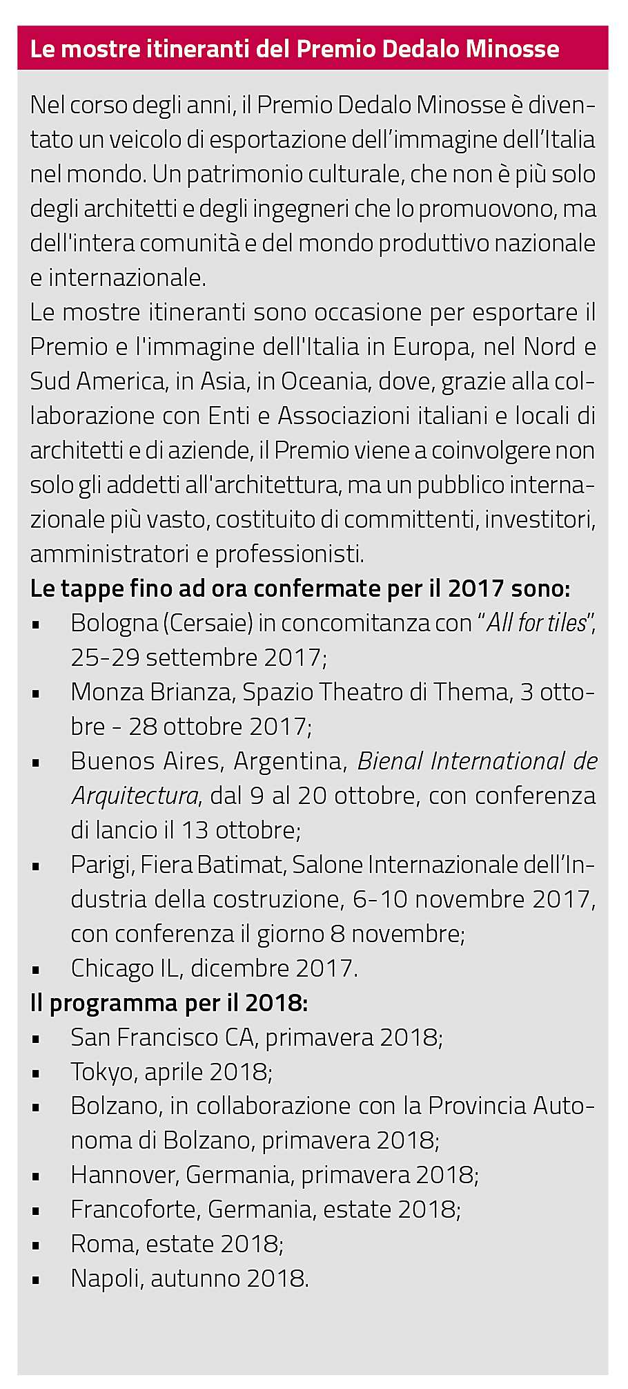 Il Dedalo Minosse ci dimostra che in tutto il mondo, con l'architettura, si produce ogni giorno bellezza e utilità e indica al nostro Paese la necessità sociale di ripristinare condizioni favorevoli alla produzione diffusa di opere provviste di tale valori. ■