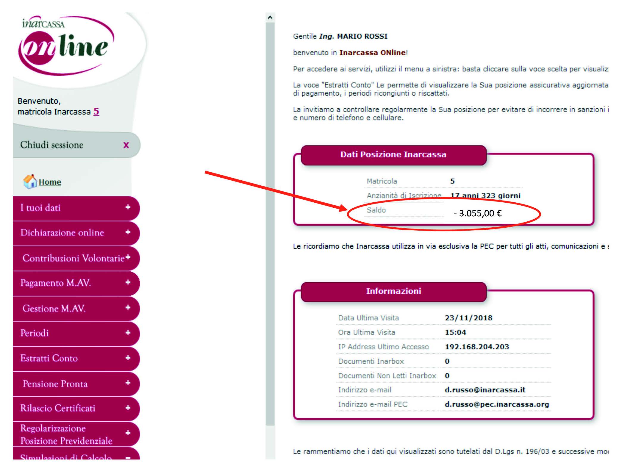 INARCASSA ON LINE. QUANDO UN VALORE NEGATIVO NON È UN DEBITO