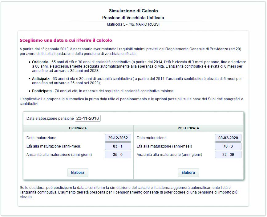In questa situazione in continua evoluzione il professionista - anche se supportato da consulenti o dalle informazioni del nostro sito, costantemente aggiornato - ha bisogno di confrontare direttamente le diverse ipotesi previdenziali possibili cercando sempre di valutare il risultato economico di tutte le varie possibilità. Nonostante siano disponibili su Inarcassa On Line le simulazioni di calcolo previsionale sia delle diverse tipologie di pensione sia di riscatto e ricongiunzione, abbiamo riscontrato nell’ultimo periodo un sempre crescente numero di richieste di incontro con i consulenti Inarcassa (Inarcassa Riceve, Inarcassa In Conference per chi non può raggiungere la nostra sede di Roma), ma anche numerosissime richieste di calcoli previsionali all’Ufficio Ciclo Passivo.