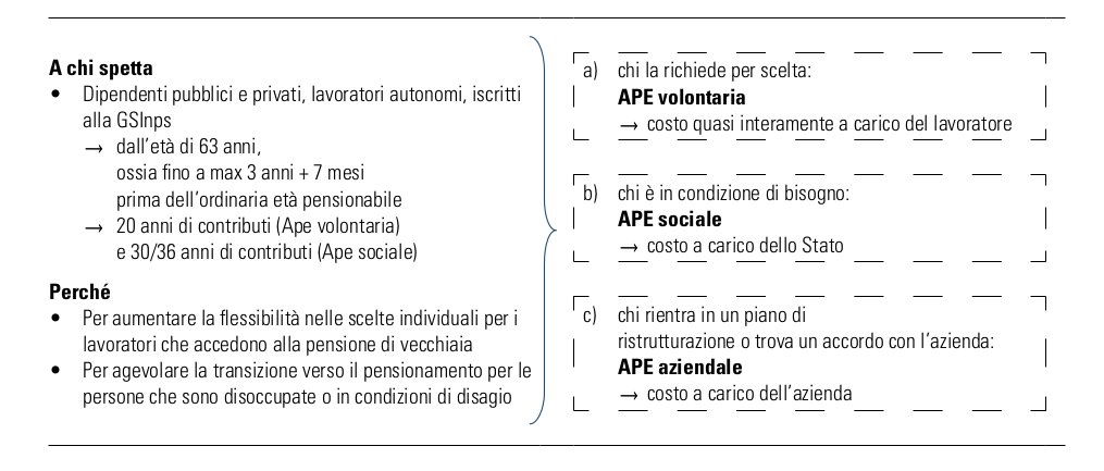 Gli strumenti previsti sono tre: APE volontaria, APE sociale, APE aziendale.