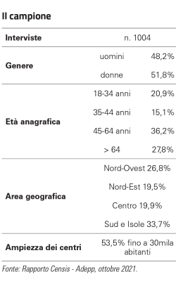 La metodologia e il campione. La metodologia adottata è basata su interviste di rilevazione con questionario somministrato a un campione (vedi tabella) della popolazione italiana.