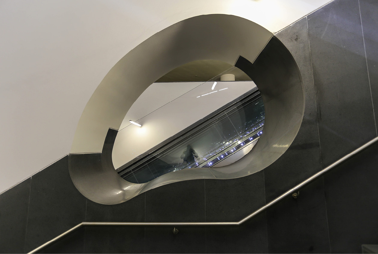 È stato inaugurato nel 2011 l’innovativo progetto degli architetti Karim Rashid e Alessandro Mendini, che miravano a simboleggiare l’era digitale e l’informazione tanto da applicare, lungo le scalinate, mattonelle di ceramica riportanti parole coniate dagli anni ’60 ad oggi, quali “ network”, “operativo”, “portatile”, “ software”, etc. I materiali utilizzati all’interno sono l’acciaio e il corian e c’è un forte contrasto cromatico, soprattutto fra il fucsia e il lime. Le opere d’arte presenti simboleggiano la comunicazione fra uomini, l’intelligenza dell’essere umano e il cervello con il suo fitto reticolo neuronale. Scendendo al secondo piano (-2) è possibile vedere, fra un intreccio di colori vivaci e allegri, le figure di Dante Alighieri e Beatrice Portinari che creano un legame fra cultura umanistica e arte contemporanea.