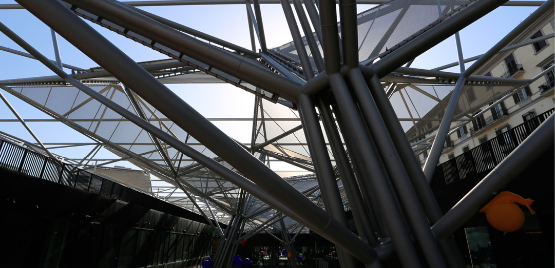 Meraviglia fra le meraviglie, riconosciuta a livello internazionale, nel 2012 viene inaugurata la stazione Toledo, progettata da Oscar Tusquets Blanca. All’esterno sono visibili tre piramidi in ocra e blu, colori che ritroveremo anche all’interno man mano che scendiamo i livelli. Infatti, si parte dal colore nero dell’asfalto, per passare all’ocra del tufo, per finire con il blu del mare come per richiamare una discesa verso gli abissi. Anche qui, i resti della cinta muraria aragonese sono stati inglobati nel progetto. Inoltre, sono presenti una statua in acciaio e due mosaici di William Kentridge. Ma la parte più suggestiva è l’opera dell’artista Robert Wilson che, con delle installazioni di luci LED, riproduce, a circa 50 m di profondità, l’effetto delle onde del mare.