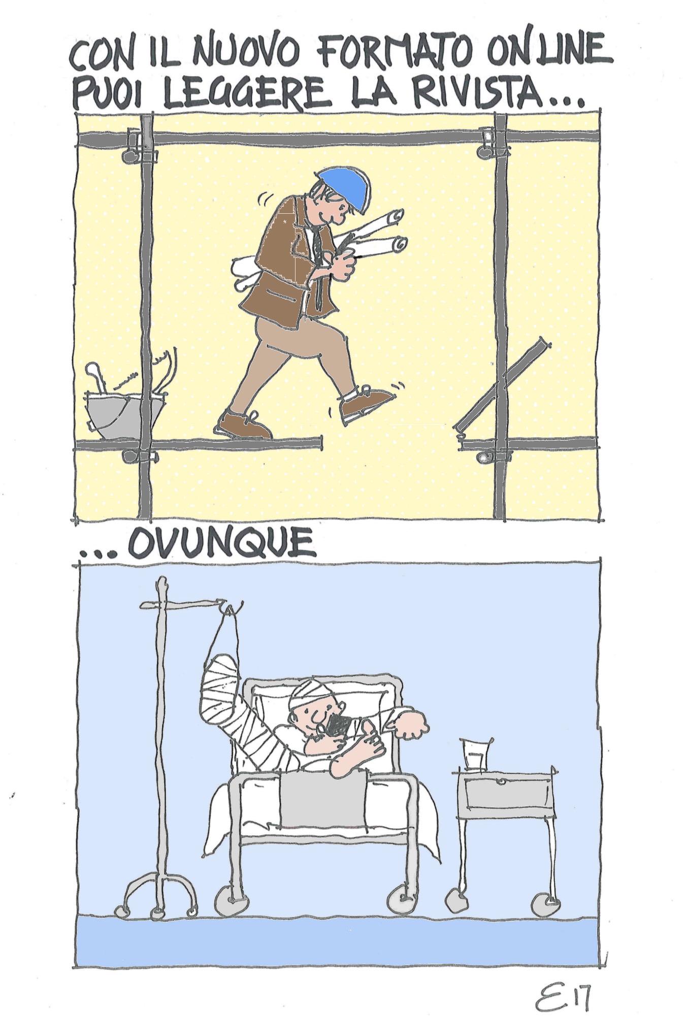 Chiude la homepage l’immancabile vignetta di Evasio e, per i nostalgici del vecchio flipbook, la copia sfogliabile della rivista in PDF. Tutti i numeri in questo formato sono inoltre comunque disponibili nella curatissima sezione Archivio che, oltre alle ultime pubblicazioni già on line, ripercorre la storia di Inarcassa dal 2008.