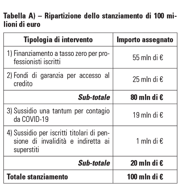 Nel periodo maggio-giugno 2020 la Giunta Esecutiva ha liquidato in favore dei professionisti e dei superstiti interessati: