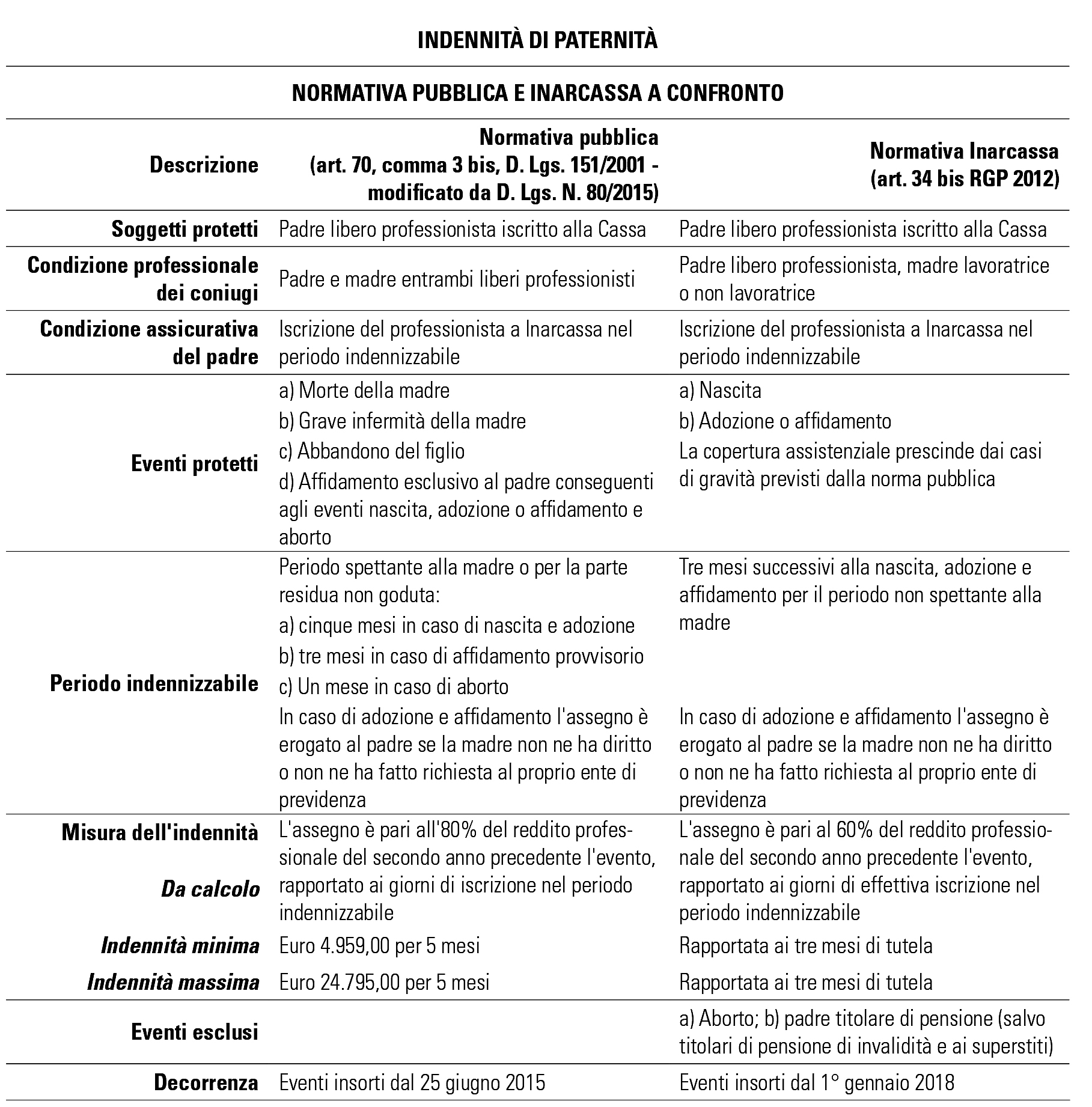 A. Indennità di paternità Inarcassa - In vigore dal 1° gennaio 2018