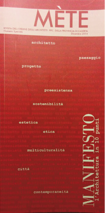 A conclusione di un percorso culturale e di confronto/diffusione, durato circa due anni, il Manifesto ha avuto la straordinaria possibilità di relazionarsi a realtà di più ampio respiro internazionale, come quella rappresentata dal Padiglione Italia alla 15.ma Mostra Internazionale di Architettura della Biennale di Venezia.