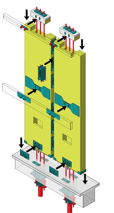Essendo un sistema prefabbricato presenta tutti i vantaggi tipici del calcestruzzo e dell'acciaio quali controllo della qualità in stabilimento e velocità di montaggio riducendo i tempi in cantiere. Data poi la leggerezza degli elementi strutturali in legno, si ha facilità di trasporto, possibilità di pre-assemblare a terra interi telai o setti e sollevarli in opera, riducendo i tempi in cantiere, con evidente risparmio in termini di costi e di tempi sia per il costruttore che per il committente stesso.