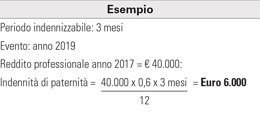 Misura dell’indennità – L’indennità di paternità è determinata nella misura di tre dodicesimi del 60% del reddito professionale denunciato dal professionista nel secondo anno anteriore a quello dell’evento (es: in caso di nascita nel 2019 l’indennità sarà calcolata sul reddito 2017).