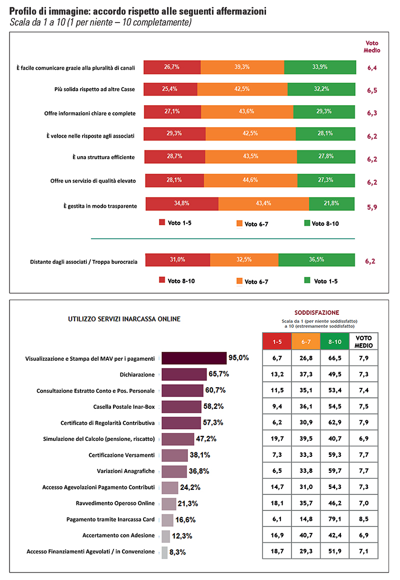 Nel complesso circa il 70% degli associati intervistati ha un’immagine di Inarcassa positiva. Gli iscritti indicano come punti di forza la solidità della Cassa e la facilità di comunicazione, mentre sono meno soddisfatti della trasparenza di gestione. In ogni modo, tutti gli indici sono migliorati rispetto al 2016.