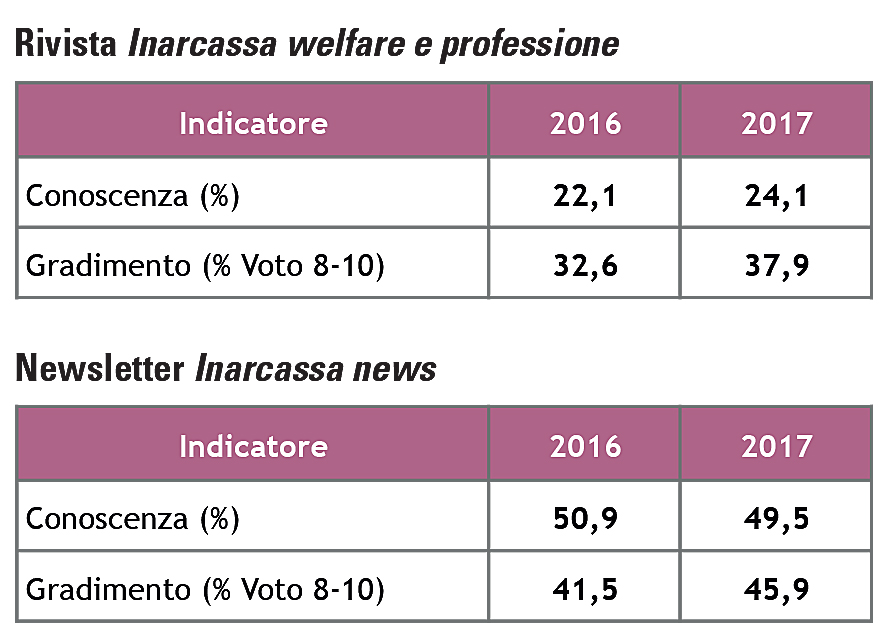 Infine, la quasi totalità degli associati (9 su 10) ha dichiarato di conoscere la newsletter Inarcassa News e poco meno della metà la legge. Il giudizio complessivo è più che positivo con un voto medio di gradimento di 7,4 (contro 7,2 nel 2016). La rivista Inarcassa Welfare e Professione risulta invece meno popolare. Solo due intervistati su tre è a conoscenza di questo strumento di comunicazione, mentre la rivista viene letta e sfogliata da circa un quarto degli iscritti. Il voto medio attribuito dagli associati lettori è pari a 7,1 (contro 6,9 nel 2016). È interessante segnalare che gli over 40 anni sono i lettori più assidui: la principale discriminante è infatti la fascia di età. ■