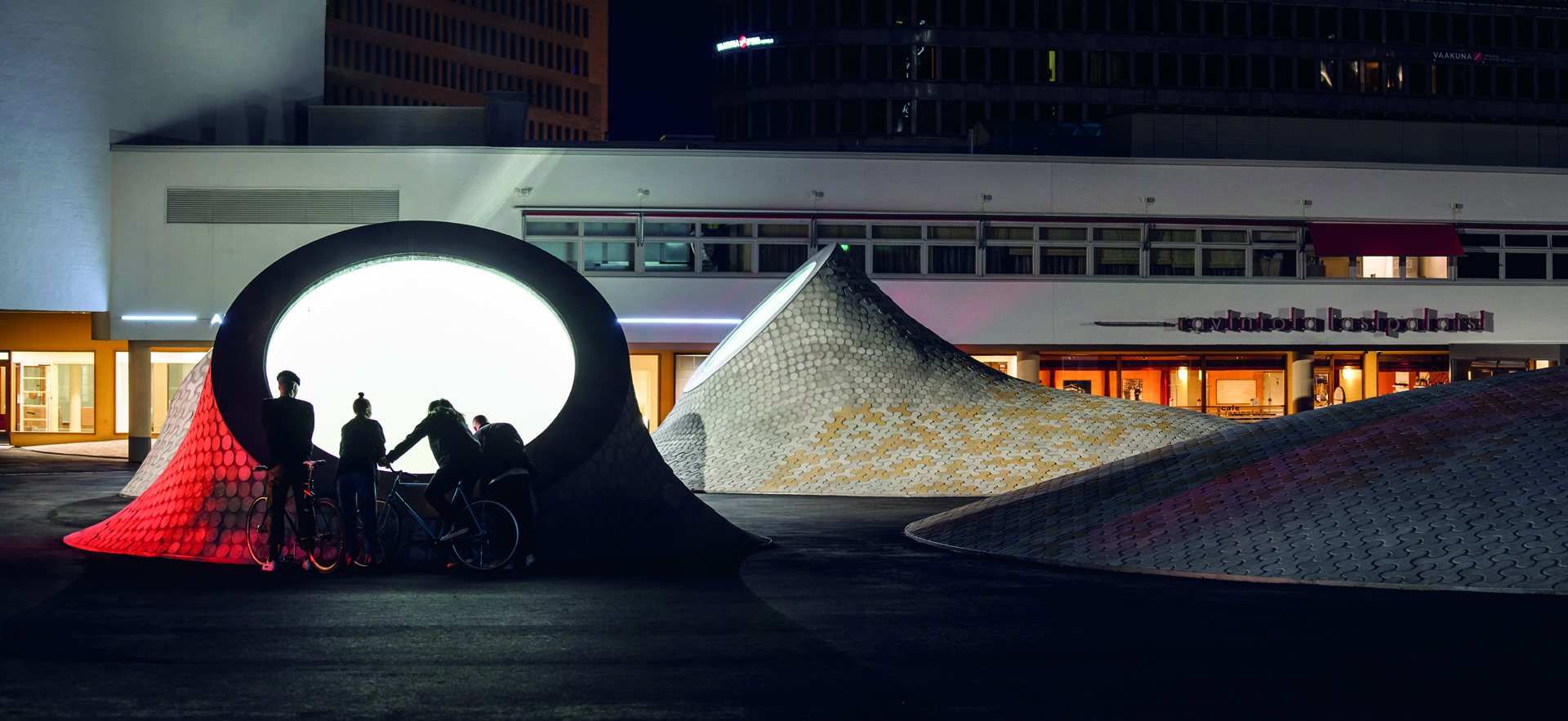Ma la caratteristica principale resta la luce, come in molti edifici museali dei paesi scandinavi. Così, le gallerie sono illuminate dal sole attraverso cupole ondulate composte da grandi oblò e piccoli dischi d’acciaio. L’effetto interno è stupefacente: il bianco è il colore prevalente anche se interrotto da ombre scure. I progettisti volevano creare uno spazio flessibile e adatto a qualsiasi tipo di esposizione per soddisfare le esigenze di un’arte contemporanea in continua evoluzione. Le cupole emergono come onde irregolari in superficie in una piazza pubblica dove affacciano edifici vecchi e moderni in un connubio che guarda al futuro, senza dimenticare il passato. Le cupole con gli enormi oblò danno l’idea di un museo che non vuole rimanere sotto terra ma che in qualche modo vuole essere parte della città. E sono proprio i vetri a connettere il mondo esterno con gli spazi espositivi, permettendo a chi è in superficie di ammirare parte degli spazi sottostanti.“Integrare uno dei primi edifici della Finlandia, risalente agli anni Trenta, con il nuovo Amos Rex è stata un’esperienza commovente”, ha spiegato Asmo Jaaksi, uno degli architetti che ha realizzato il progetto. “Aggiungendo un nuovo livello al vecchio edificio, abbiamo cercato di creare un collegamento armonioso tra presente e passato”. La piazza su cui si aprono gli oblò svolgerà – nella stagione calda – anche la funzione di un vero e proprio forum di eventi culturali. “La nostra intenzione è proprio quella di rendere la piazza un parco giochi per i più piccoli, e anche di creare una sorta di nuovo spazio urbano e culturale della città”, ha dichiarato Jaaski. Il vecchio edificio del Lasipalatsi è stato ristrutturato con il suo cinema Rex Bio in stile art deco da 590 posti.
